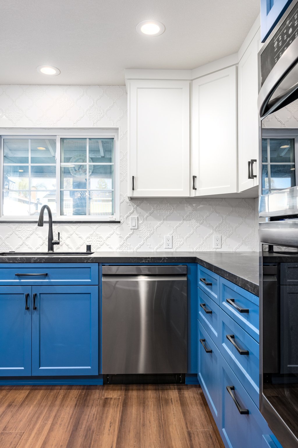 Discover why Diamond Group Builders stands out as the top choice for home remodeling in San Jose with our recent completion of a spectacular kitchen remodel project. Located in the heart of Silicon Valley, Diamond Group Builders has earned a reputation for excellence in transforming homes with superior craftsmanship and attention to detail. Our latest endeavor in San Jose showcases our expertise in delivering stunning kitchen renovations that marry style with functionality seamlessly. We used premium materials such as custom cabinetry, crafted to maximize storage and aesthetic appeal, alongside engineered hardwood flooring that combines durability with timeless elegance. The mosaic tile backsplash, artfully taken all the way to the ceiling, adds a touch of sophistication and texture, complementing the luxurious leathered quartzite countertop that enhances both durability and visual appeal. From initial consultation to final touches, Diamond Group Builders ensures a personalized experience tailored to exceed your expectations.